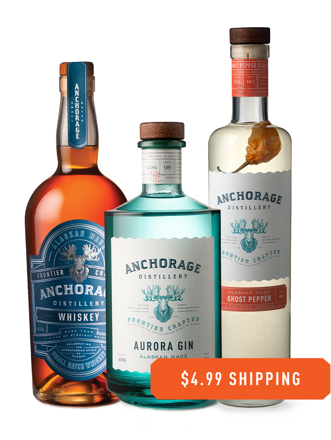 We distill our whiskey from wheat grown in the valley between the talkeetna and chugach mountain ranges and barley grown in alaska’s rugged interior. once matured, we blend this spirit with the purest of water and whiskey from the lower 48. never chill-filtered, the result is a frontier crafted whiskey that only a few will get to discover.